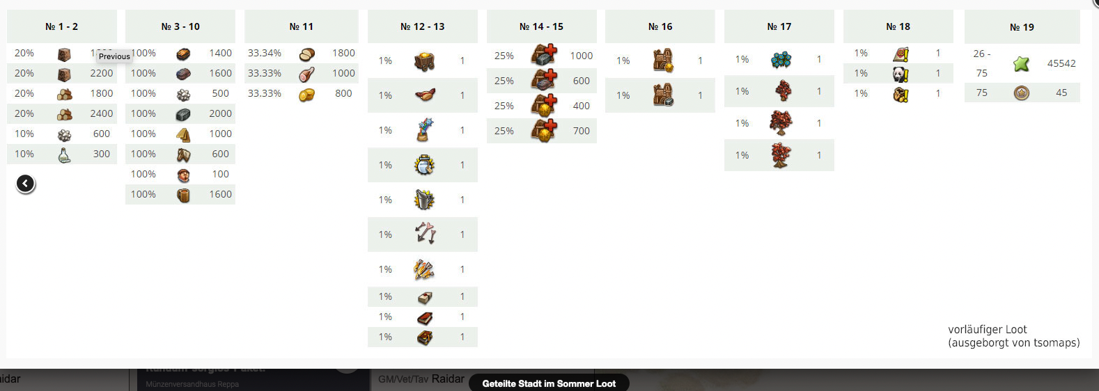 Loot Tabelle Geteilte Stadt im Sommer