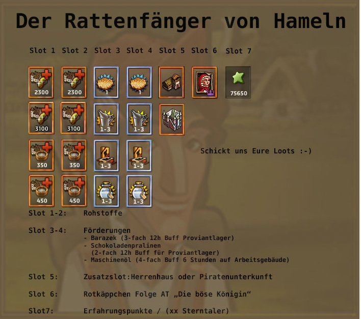 Loot Tabelle Der Rattenfänger von Hameln