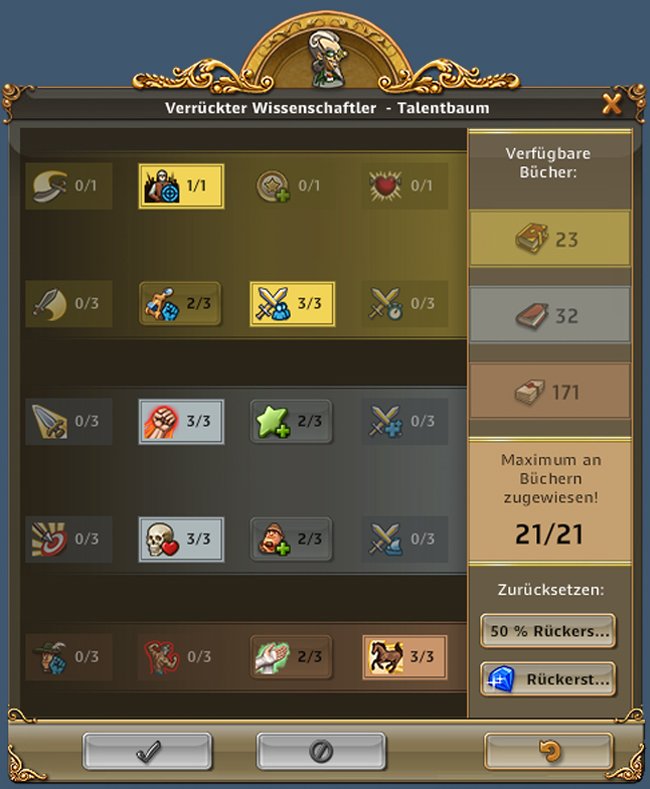 Der Verrückte Wissenschaftler mach viel Sinn bei Verwendung von Kanonen und Belagerern, gerade wenn man z.B. noch keinen Generalmajor oder älterern Zwilling sein eigen nennt.