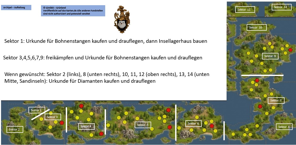 Übersicht mit Anleitung und Nummern der Sektoren Archipel Teil 1 (entspricht Sektor 3) Archipel Teil 2 (entspricht Sektor 4) Archipel Teil 3 (entspricht Sektor 5) Archipel Teil 4 (entspricht Sektor 6) Archipel Teil 5 (entspricht Sektor 7) Archipel Teil 6 (entspricht Sektor 9)