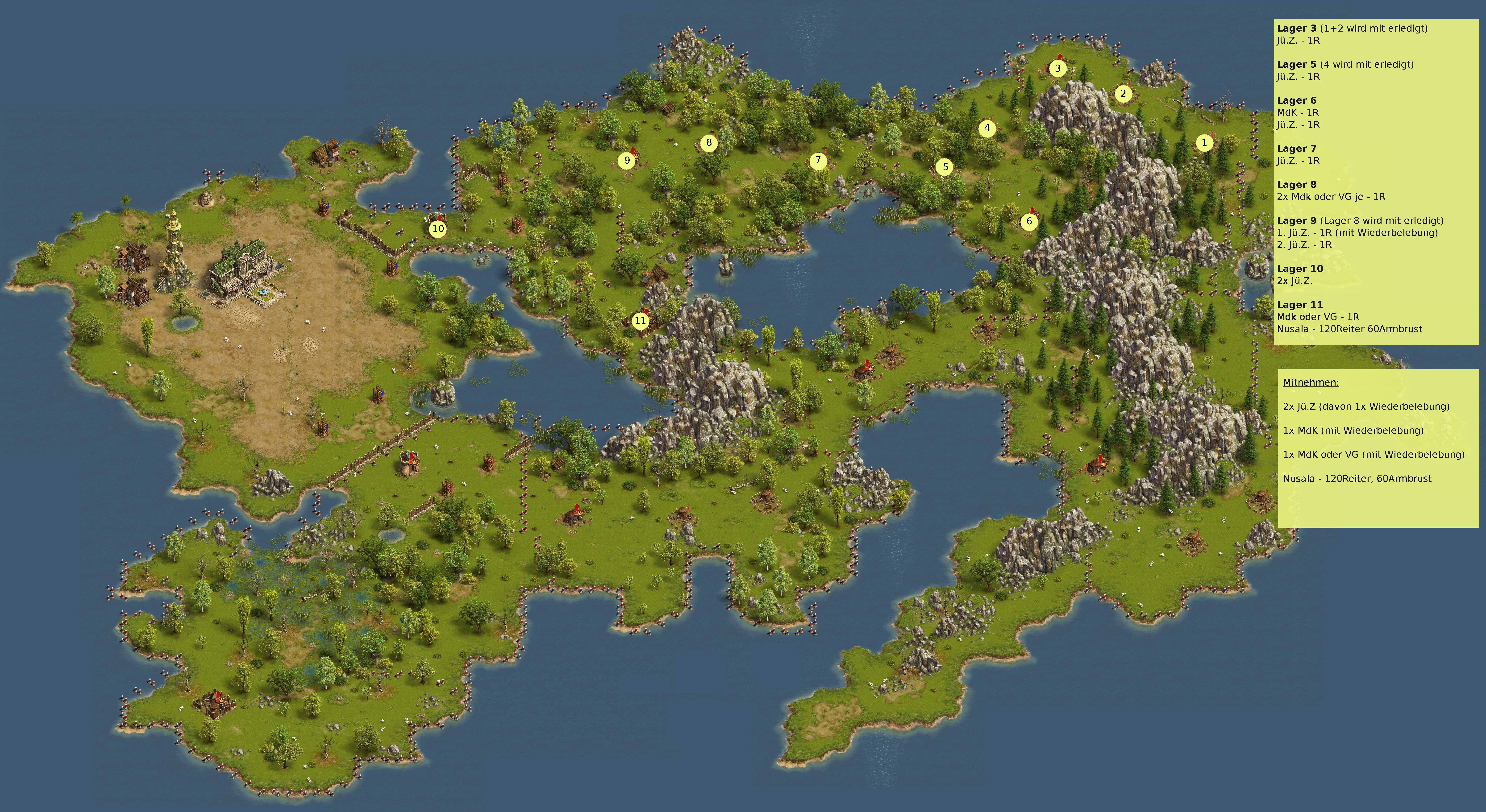 Ziel: Erobert alle Räuberlager auf Eurer Seite der Karte.